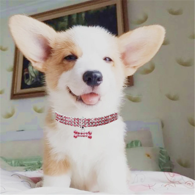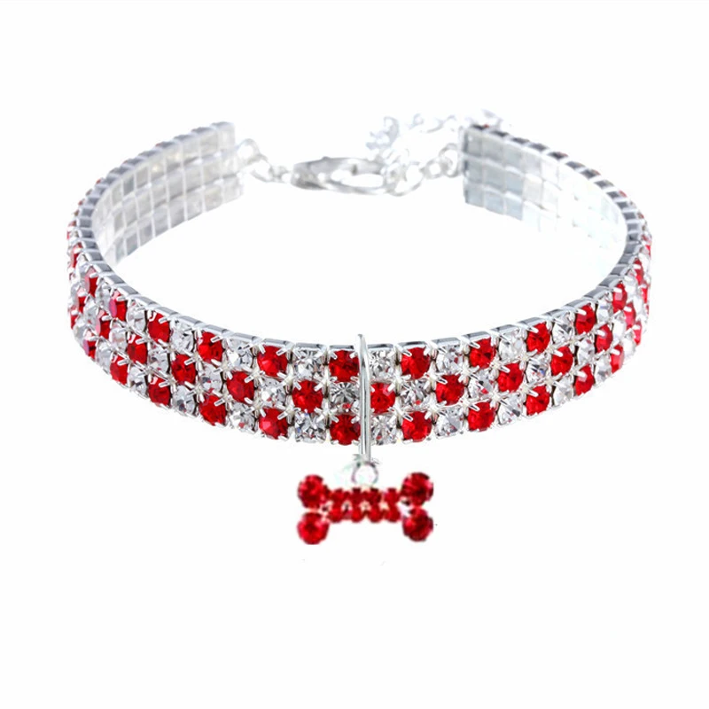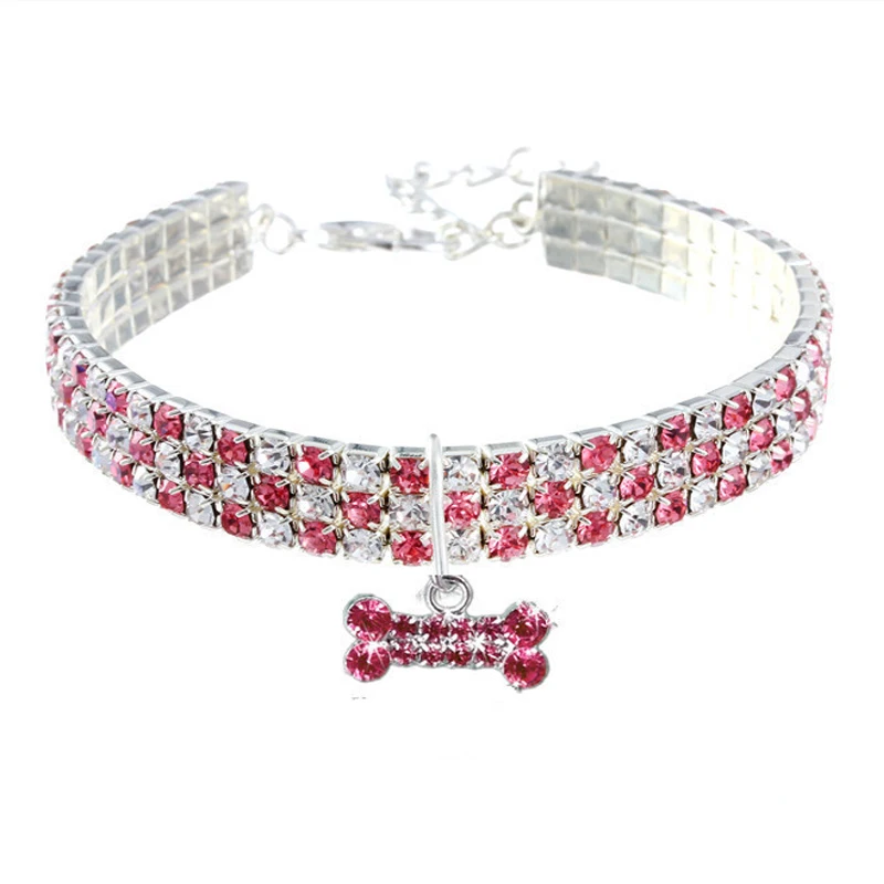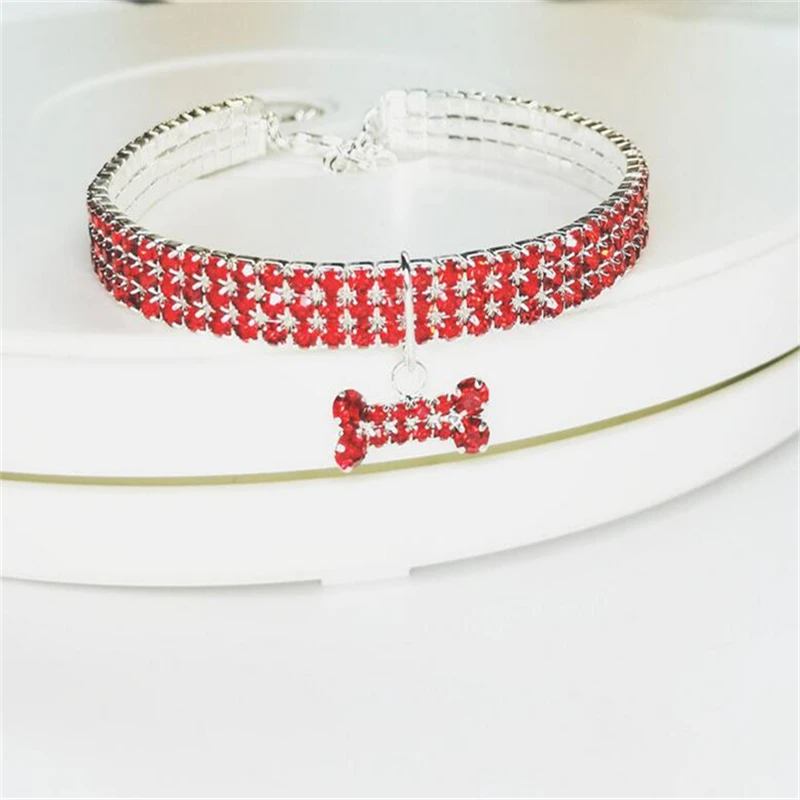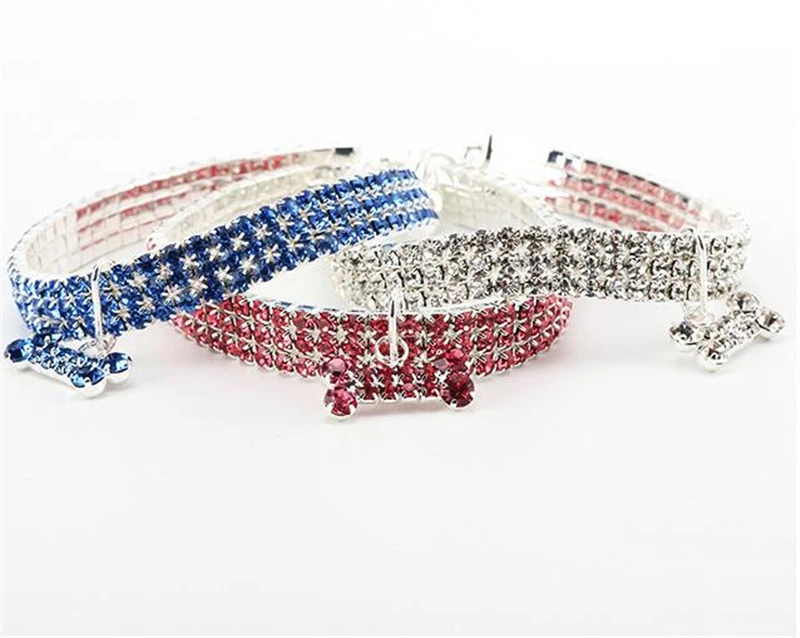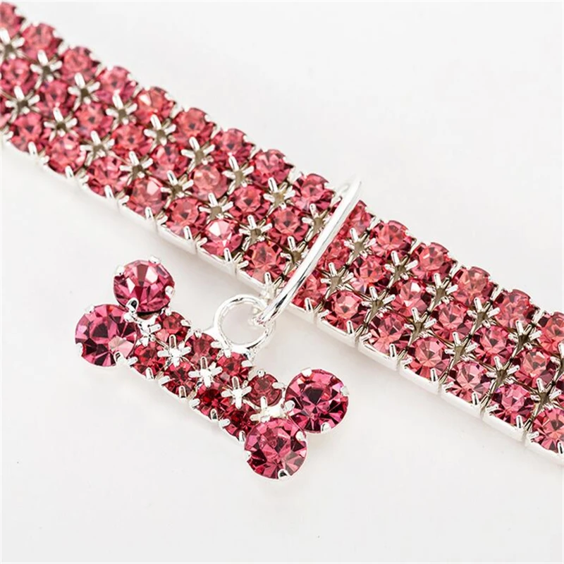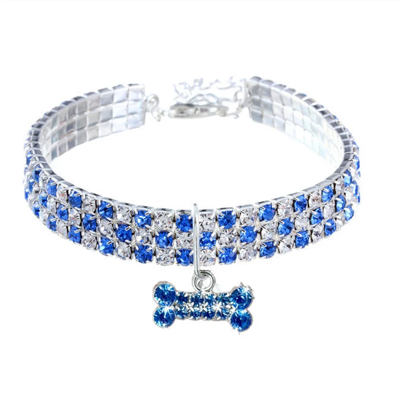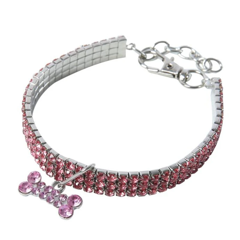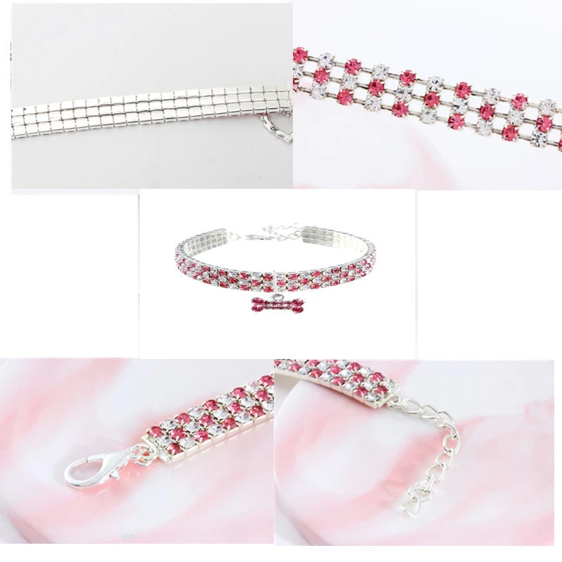 -Colar de animal de estimação de strass brilhante, boa elasticidade e ajustável.
